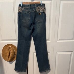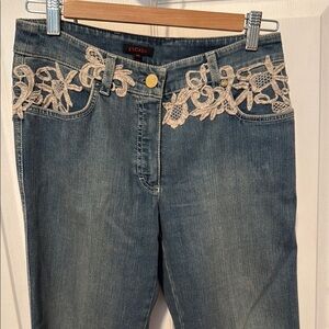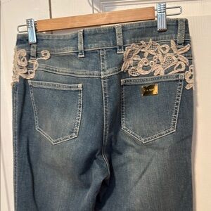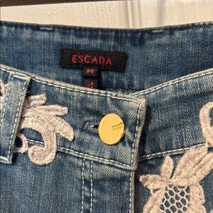 Escada Blue Jeans with Cream Lace Accent EU 36/S