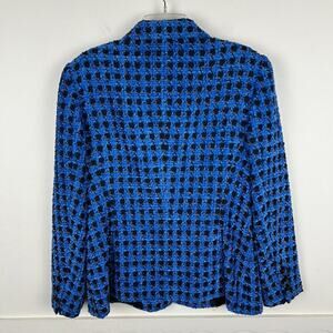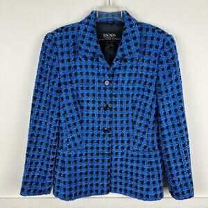 Escada Blue Textured Button Front Structured Oversized Blazer M