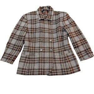 Escada Brown Striped Windowpane 100% Wool jacket Size 40 Mint
