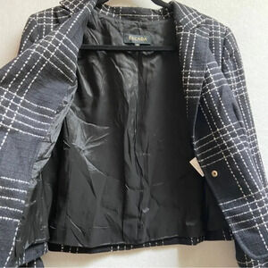 Escada Bushra Virgin Wool Angora black white plaid one button blazer Sz 38
