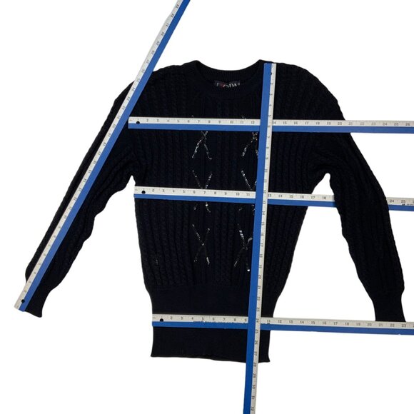 Escada Cable Knit Sequins Sweater 36 S Blue Crewneck Long Sleeve Pullover Party