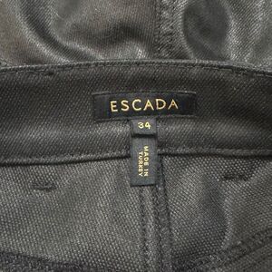 #Escada #EscadaJeans #DesignerDenim #LuxuryFashion #CoatedJeans #BlackJeans #GrommetPants #GoldZipperJeans #HighEndStyle #EdgyFashion