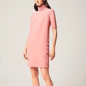 Escada Dascalopa Scalloped Pink Wool Sleeveless Lined Midi Dress 38 or US 8