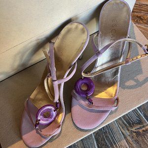 Escada Designer Barbie / Y2K Purple Fabric & Leather Heels With Gold Insole