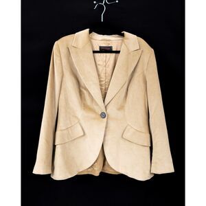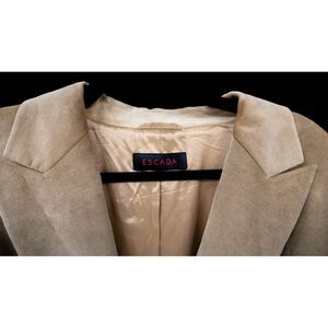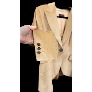 Escada Designer Velvet Corduroy Camel Tan Single Breasted Blazer Jacket Sz L