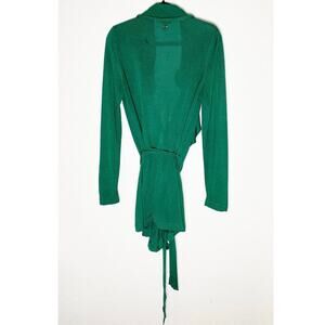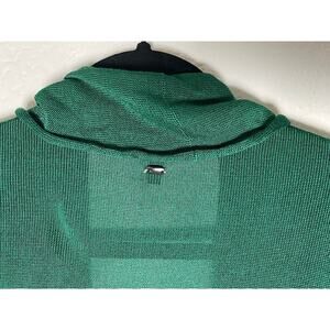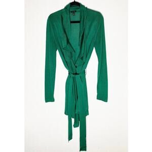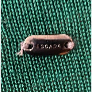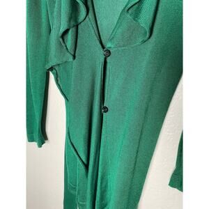 Escada Designer Women's Emerald Green Cardigan Sweater Waterfall Collar Open Front 2 Button Closure Waist Tie