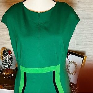 Escada Double Zip Leaf Green Sheath Dress Geometric Women’s Size EU 42 US 10