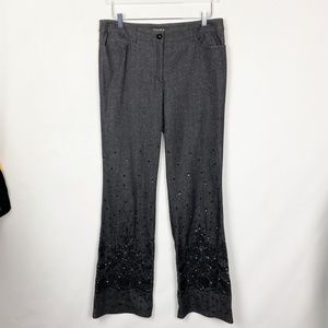 Escada Embroidered Beaded Black Denim Wide Leg Pant 42