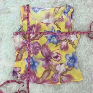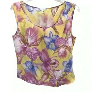 Escada Floral Print Multicolor Yellow Watercolor Women’s 40 Sleeveless Silk Blouse.