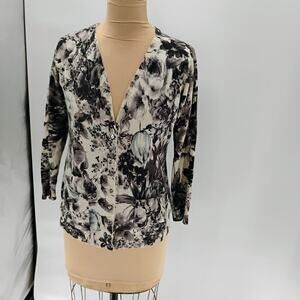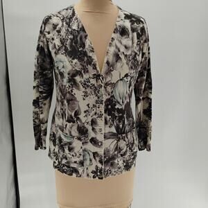 Escada Floral floral cardigan sweater virgin wool blend silk button front