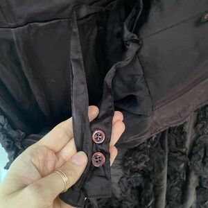 This stunning Escada silk gown is perfect for any formal occasion. The off-the-shoulder neckline and strapless sleeve type create a timeless, elegant look. The dress features a collarless design, zip closure, and beautiful layering accents that add dimension to the solid brown color.
