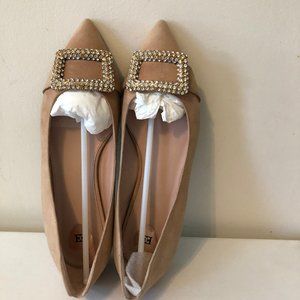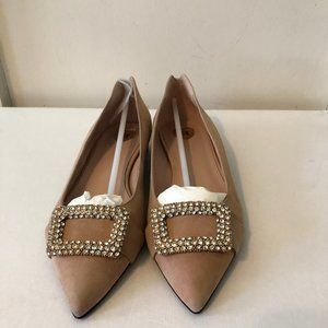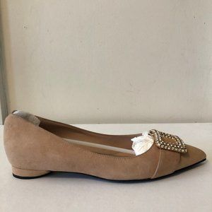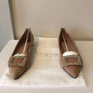 Escada Iconic Swarovski Crystals Beige Suede Pump