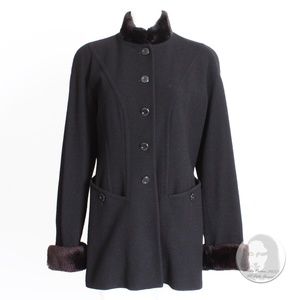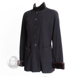 Escada Jacket Coat Black Wool Blend Removable Sheared Beaver Fur Trim Vintage 40