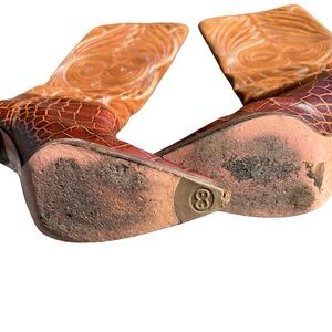 Escada Leather Boots 37.5 Brown Heart/Logo Embroidery Croc/Reptile Look