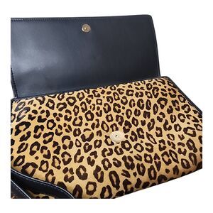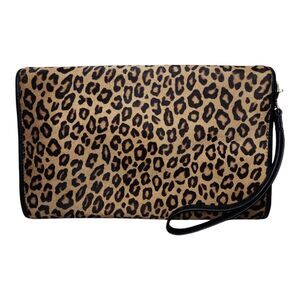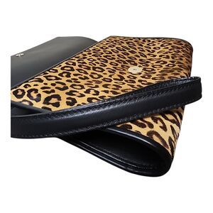 Escada Leopard Clutch Bag Calf Hair Leather Trim Flap Evening Bag wristlet