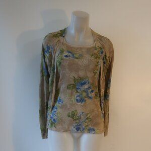 Womens Escada Light Gold Metallic Floral 2PC Cardigan Sweater/Tank Set 34 EUR/US 2