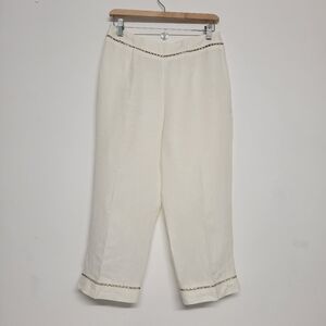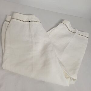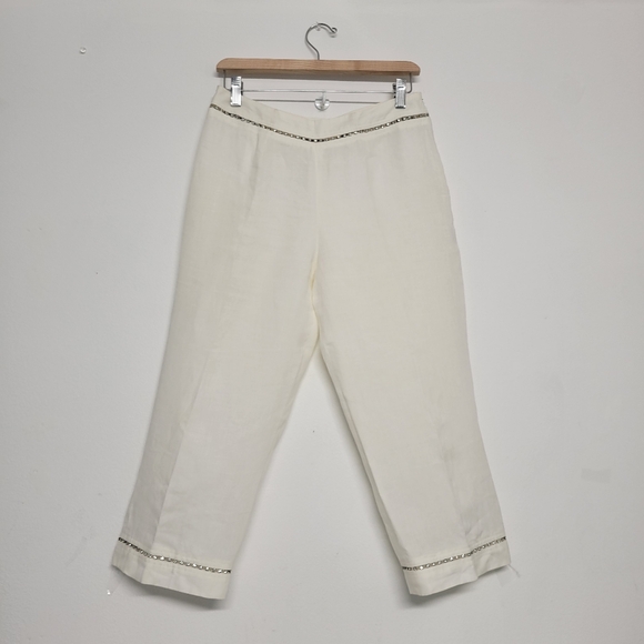 Escada Linen Beautiful Cream Ankle Pants with Embellished Crystals Trim