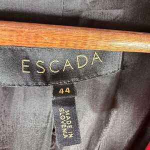 EscadaSize 44Cherry RedLongline Blazer JacketBlack PipingWool BlendPre-Owned-A Couple Of Very Tiny Dots On LapelLinedMeasurements Bust 20 Length 26.5Inventory W