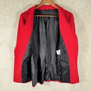 Escada Long Line Blazer Jacket Women's 44 Cherry Red Wool Single Button Pockets
