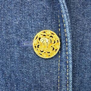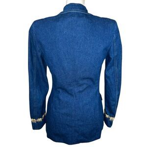 Escada Margaretha Ley 34 Denim Blazer Jacket Gold Elephant Trim Buttons US 4