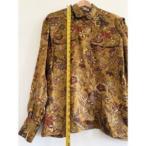 Escada Margaretha Ley GOLD Vibrant 100% Silk Charmeuse Blouse Shirt Scarf XL