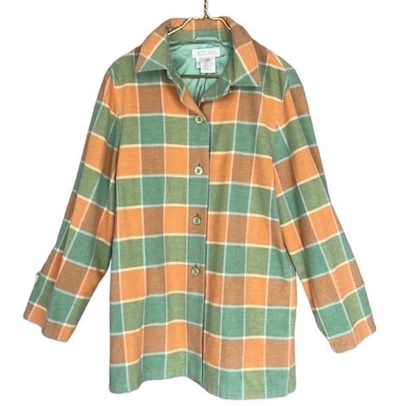 Escada Margaretha Ley Orange & Green Plaid Cashmere Wool Shirt Jacket
