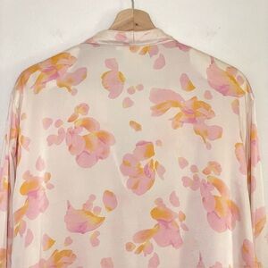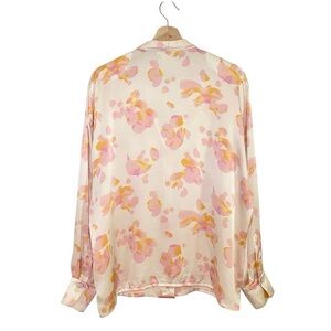 Escada Margaretha Ley Vintage Silk Satin Floral Blouse in Cream / Pink, Women’s Size EU 42 US 12 / Large.