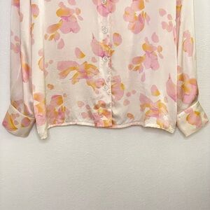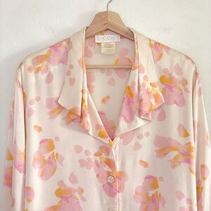 Escada Margaretha Ley Vintage Silk Satin Floral Blouse Cream Pink EU 42 US 12
