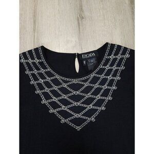 Escada Margaretha Ley Wool Knit Chain Stitch Top Shirt Womens 42