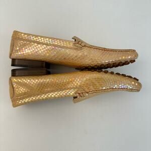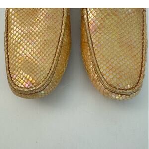 Escada Mocassin Loafers Snakeskin Animal Print Leather Peachy Pink Slip-Ons 37C