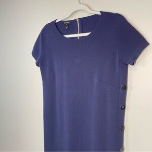Escada Navy Blue Short Crew Crewneck Shift Dress Side Buttons Size Womens Small