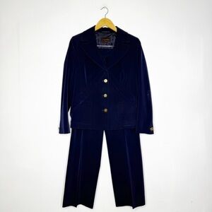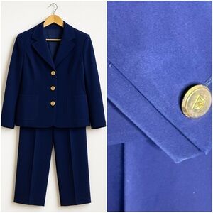 Escada Navy Blue Suit with Gold Buttons Pant Blazer Size 38 / 8