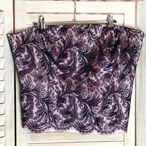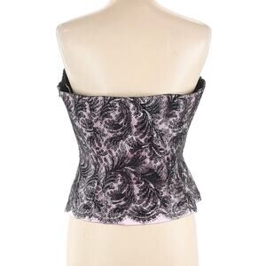 Escada Pink Black Metallic Lace Bustier Cropped Strapless Top 42 US 12