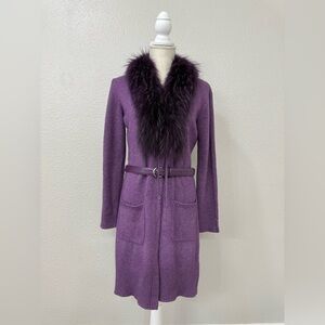 Escada Purple Wool Raccoon Fur Collar Detail Cardigan Size 34 Small