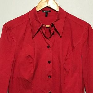 Escada Red Button Down Shirt Blouse