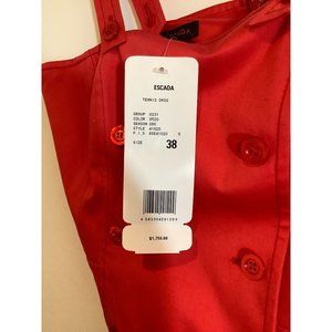 Escada strap red dress with double buttons size 38 with new tags and with pockets
