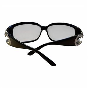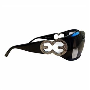 Color: Black frame with silver-tone rhinestone “E” logo at temples