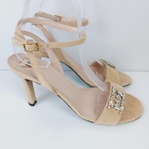 Escada SZ 38 Nude Leather Slingback Sandal With Rhinestone Embelishment NEW