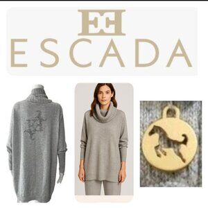 Escada Safina Gray Cowl Neck Sweater Cashmere & Sweatpants Size S The Escada Safina Gray Cowl Neck Sweater in size S is made of luxurious cashmere. This pullover sweater features a stylish cowl neck design. The set also includes matching pants. Perfect for women looking for a cozy and chic outfit. Size S (Sweater Full length: height 31'', p2p 20'', sleeve length 23'') Fabric: 100% Cashmere   Excellent pre-owned condition. As shown in photos. The wearing photo is borrowed from the store. It’s in a different color, but it can serve as a reference for the silhouette. Reasonable offers are welcome! Any questions/concerns please state in direct messages. WomensFashion,LadiesClothing,GirlBossStyle,Dresses,Tops,Bottoms,Skirts,Jumpsuits,Rompers,PlusSize, Streetwear,LuxuryFashion,VintageClothing,RetroStyle,BoHoChic,Minimalist,MaxiDress,Bodycon,Athleisure,BusinessCasual