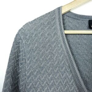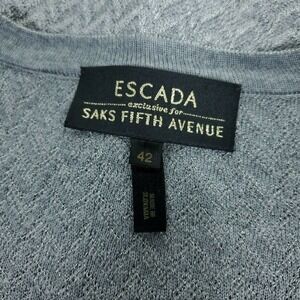 Escada Saks Fifth Avenue Cardigan EUR 42 Gray Wool Chevron Knit Tunic Sweater