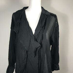 Escada Sheer Black Silk Blouse w/ Studded Detail