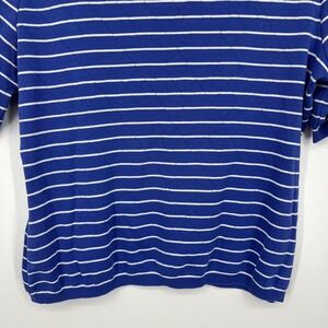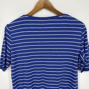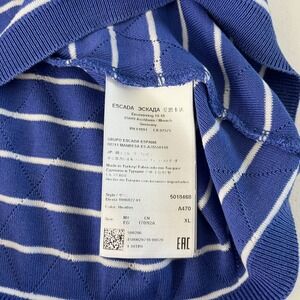 Escada Shirt Women's Size XL Blue Striped Short Sleeve Cotton Round Neck