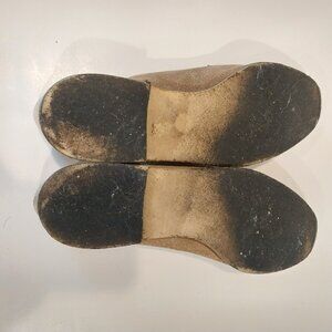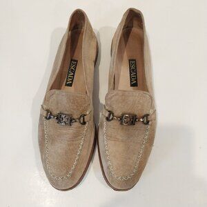Escada Shoes Womens 8.5 Beige Tan Velvet Loafers Flats Moccasin Logo Rubber Sole
