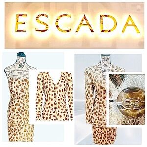 Escada Silk Cheetah Print Dress & Cardigan Sweater Suit S 36/38