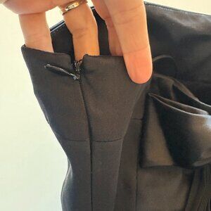 Escada Silk Strapless Black Back Bow Pleated Laser Cut out Prom Dance Wedding