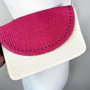 Escada Sorbetto Rosso Watermelon Straw Rattan Chain Crossbody Shoulder Bag