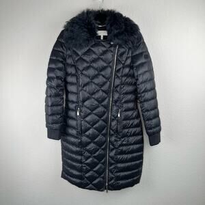 Escada Sport Black Quilted Real Fur Trim Long Down Puffer Jacket Coat 36 US 6