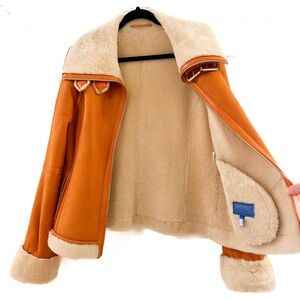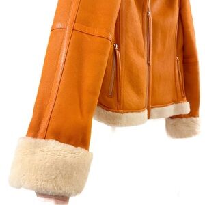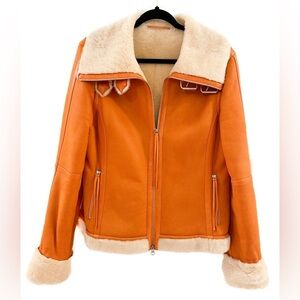 Escada Sport Lambskin Leather Shearling Lined Moto Jacket Orange sz Medium