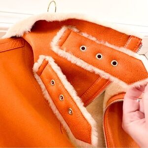 Orange , fall , winter , Sherpa , lamb skin , suede , designer , motorcycle jacket , aspen , vail , ski trip , cold weather
