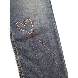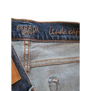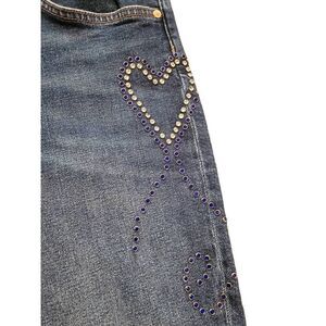 Escada Sport Linda Skinny Jeans Cropped Rhinestone Heart Embellished Blue 16